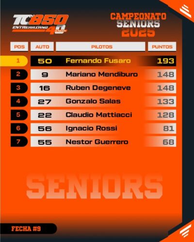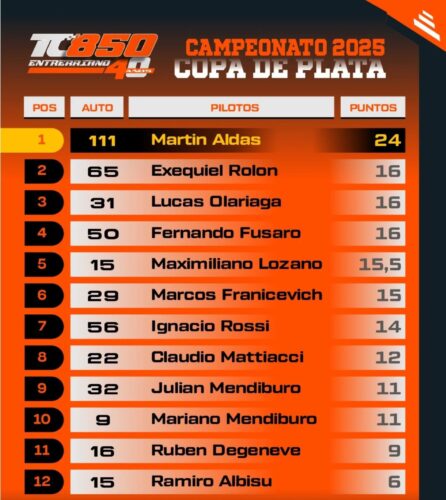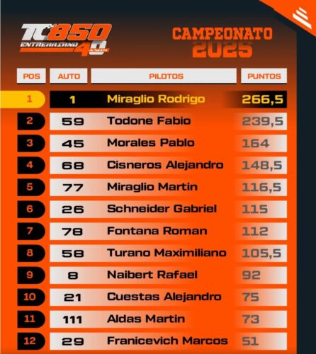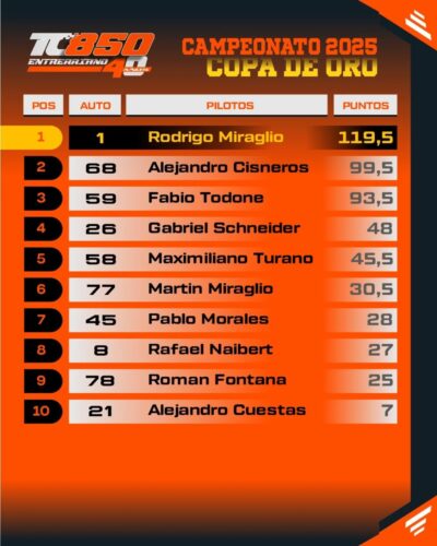 Campeonato final 2025, Copas de Oro, Plata y Seniors TC 8502025-12-212025-12-21RELACIONADA Entre recargos, pulseadas y gloria: el 1 para Gogui Miraglio, el coronación para Cisneros – Acelerando Entre Ríos Compartir: