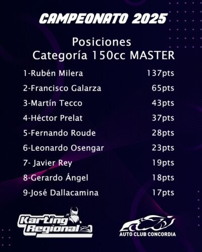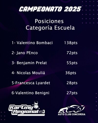 Campeonatos Kart Regional Concordia I 6 fechas y la próxima2025-10-17RELACIONADA Kart Regional Concordia: otra doble por la recuperación – Acelerando Entre Ríos Compartir: