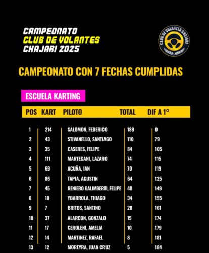 Campeonatos kart y motos Club de Volantes Chajarí I 7 fechas de 82025-11-282025-11-28RELACIONADAS Kart y Motos Chajarí escribió una de esas páginas que el tiempo no borra – Acelerando Entre Ríos A tono con la temporada y el anticipo climático: Kart y Motos Chajarí en modo postergación – Acelerando Entre Ríos Compartir: