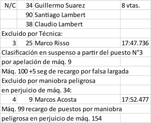 Porque, en efecto, desde el final de la competencia y hasta la exclusión técnica de Marcos Acosta, el título 2025 tenía dueño provisorio. Aunque ya pesaba sobre él la exclusión por maniobra peligrosa en perjuicio de Guillermo Suárez —en la vuelta 9 de las 12—, recién con el dictamen definitivo se reordenó el tablero y se despejó el panorama.