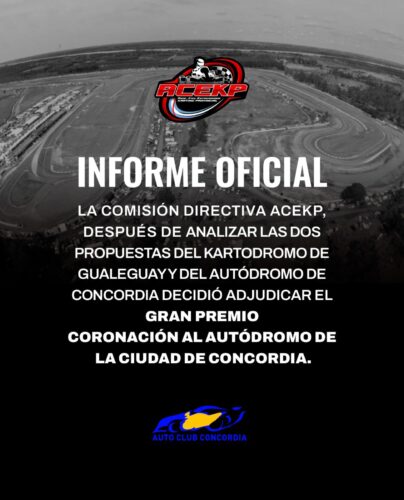 Con las propuestas arriba de la mesa —el kartódromo de Gualeguay por un lado, el Parque Autódromo “Ciudad de Concordia” por el otro— fue finalmente este último el que ganó la pulseada. Concordia se adjudicó la organización del Coronación del Kart Entrerriano, previsto para el 6 y 7 de diciembre, y ya empieza a calentar motores para recibir la gran despedida del año.