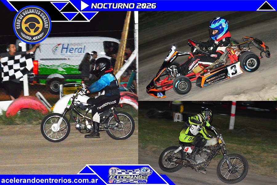 Sin pausa y con los fierros todavía tibios, Kart y Motos del Club de Volantes Chajarí ya se pone el casco para su segunda noche del verano 2026 en el clásico trazado de Lombardía y Avenida Libertad. Apenas dos semanas después de un arranque que fue una bomba: más de 125 protagonistas, seis divisionales de kart y tres de motos, “tribunas” a reventar y un clima que la categoría sabe crear. De esas jornadas que arrancan con sol y terminan con rocío… y ojeras.