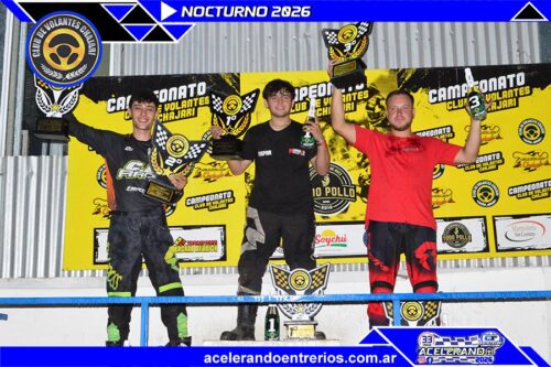 Del lado del kart, la madrugada dejó una lista pesada de ganadores y varias historias para subrayar. En Escuela, festejaron Santiago Stivanello y Fede Salomon; Elena Marzoratti se llevó la única final de Escuela Light; en 150cc A festejaron Lucio Alcalá (campeón 2025 del nocturno) y Nico Scatolaro; en 150cc B ganaron Gabriel Chiesa (campeón vigente del mini) y Nahuel Zanandrea; en 150cc C se repartieron la gloria Miguel Ángel Álvarez y Juan Durante; y en 150cc Promocional asomaron Gerónimo Zilloni y Bautista Fernández.