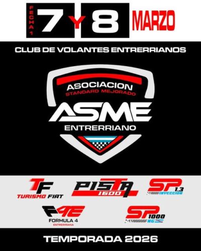 Tiene fecha ya el primer capítulo de las categorías de la Asociación Standard Mejorado Entrerriano (ASME) y Competición Especial Entrerriana, la que además ya le puso días a las otras siete instancias de su calendario, una menos de las 9 que venía realizando.