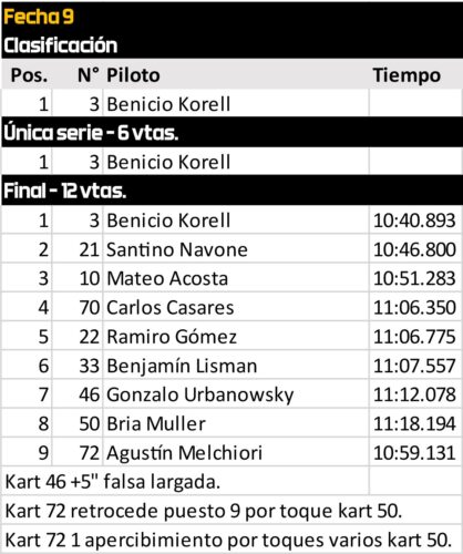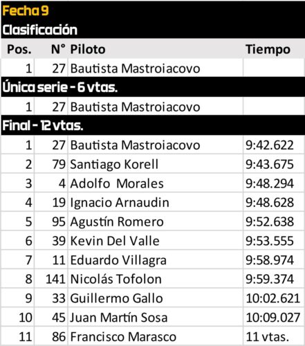 El domingo fue nuevamente territorio Korell. Con serie incluida, nadie logró seguirle el ritmo en la final. Navone aseguró el segundo puesto tanto en la carrera como en el certamen, que logró por nueve puntos sobre Acosta, tercero en ambas instancias y protagonista de su mejor temporada.