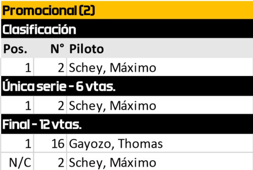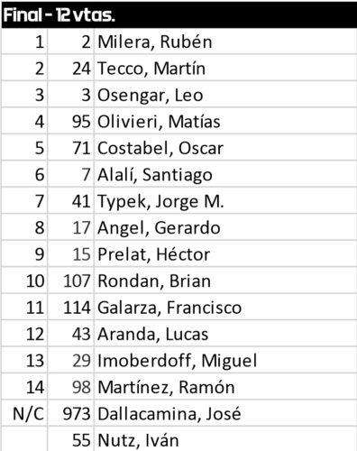 El “Turco” Santiago Alalí, Jorge Mario Typek(que se sumó para la ocasión),Gerardo Ángel(otro que volvió), Héctor Prelat y Brian Roldan, esta vez también como piloto, completaron el top ten.