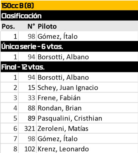 En esa oportunidad, fue destacada participación en 150cc B y C, además de Escuela Light, con el acompañamiento de 110cc Escuela, Promocional y la Copa de Damas.