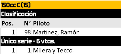 Tres “Master” coparon el podio de 150cc C (15): el ex campeón Rubén Milera, Martín Tecco y Leo Osengar, a quienes escoltaron el juvenil Matu Olivieri y Oscar Costabel, todos concordienses.