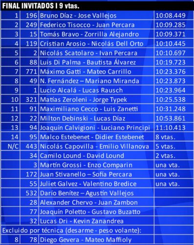 La C subió levemente (de 13 a 15) y tuvo ganadores de peso: Lionel Fernández (3) entre titulares, y Facu Pierini (177) —de Gastón Dubois— entre invitados. El campeonato, sin embargo, no se ordena por nombres sino por puntos: Diego Santamaría hizo lo suyo en titulares y su hermano Marcos, debutante, fue P2 entre invitados. Resultado: Santamaría y Miguel Álvarez llegan igualados a la última, con Typek y Fochesatto al acecho, en una categoría donde todavía falta la estocada final.