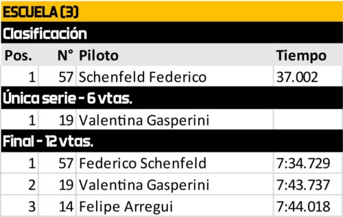 La Escuela, o Junior, volvió a tener a Federico Schenfeld (57 y foto del podio) como abanderado. Fueron tres en pista y el local repitió victoria, ratificando lo hecho en el coronación del campeonato anual.