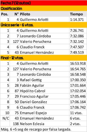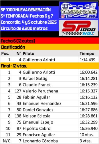 En la fecha 6, lo escoltaron Hernández y Víctor Fontana, relegando al cuarto puesto a Norberto Bel, reciente ganador en Paraná, que se mantiene segundo en el campeonato.