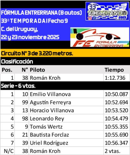 Posiciones finales Campeonato 2025 Fórmula Entrerriana – Acelerando Entre Ríos
