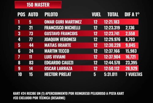 💥 EL GURÍ Y SU CÁTEDRA EN MASTER C. Con 11 protagonistas, la 150cc Master C fue terreno fértil para que Omar Martínez (5) volviera a dar cátedra. Logró su tercer triunfo en cuatro presentaciones, recuperando la cima del campeonato.