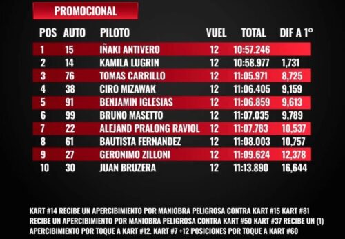 💥 LA PRIMERA DE ANTIVERO EN PROMO. Iñaki Antivero (15) vivió un día inolvidable al ganar por primera vez en su trayectoria deportiva, casi toda en el Kart Entrerriano (con algunas incursiones en LMK), a la vez que la también local Kamila Lugrin fue 2ª despues de ardua batalla, a quienes sucedió el puntero del campeonato, el correntino Tomás Carrillo.